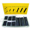 375 assorted sizes of nylon cable ties in a range of colors for clear grouping and identification. Non release ratchet lock action for permanent non slip hold. Supplied in a clear storage jar with cutting tool.